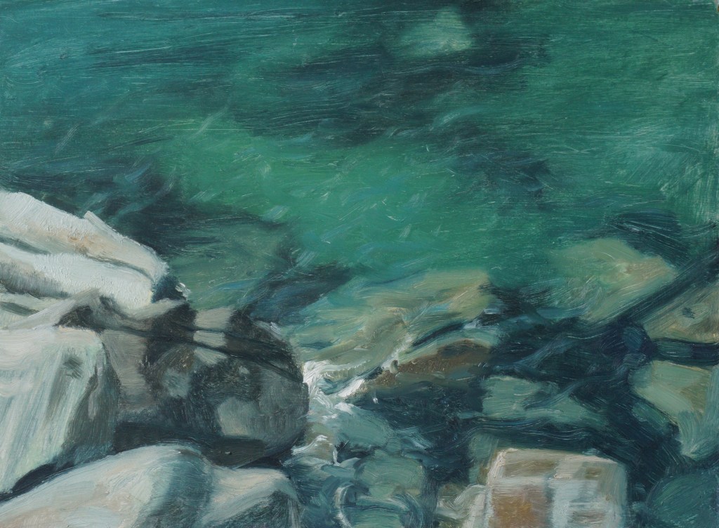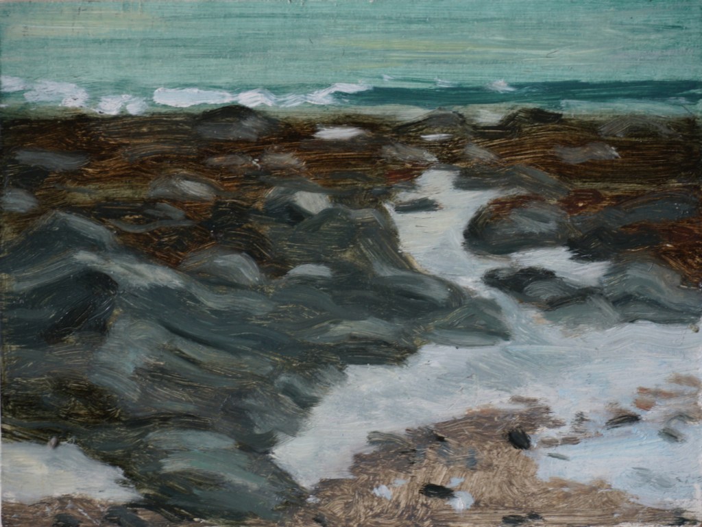 Rockpools and Wave, oil on board, 14 x 11 cm