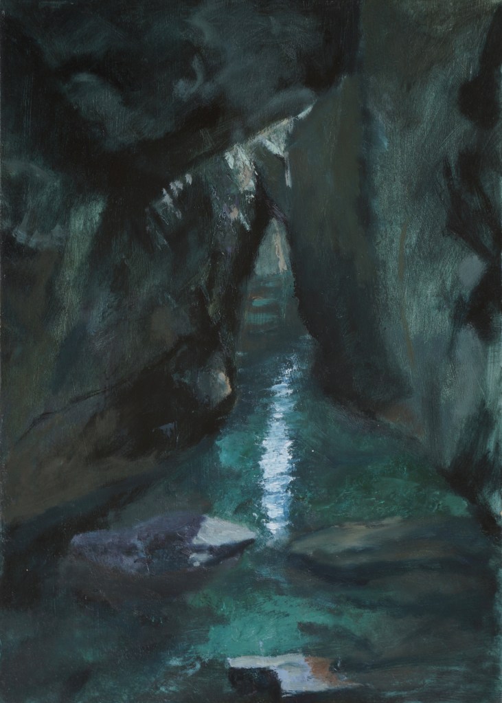 Jammed Boulder Gully, oil on board, 42 x 30 cm