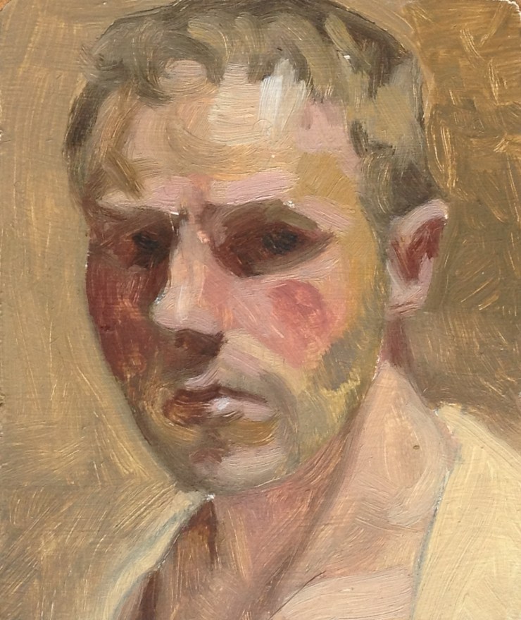 Self Portrait with Beard, oil on board, 11 x 8 cm