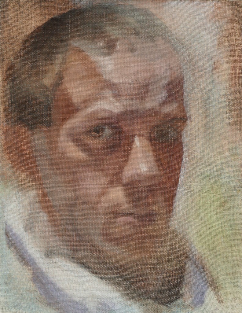 Self Portrait with a Scarf, oil on board, 21 x 16 cm